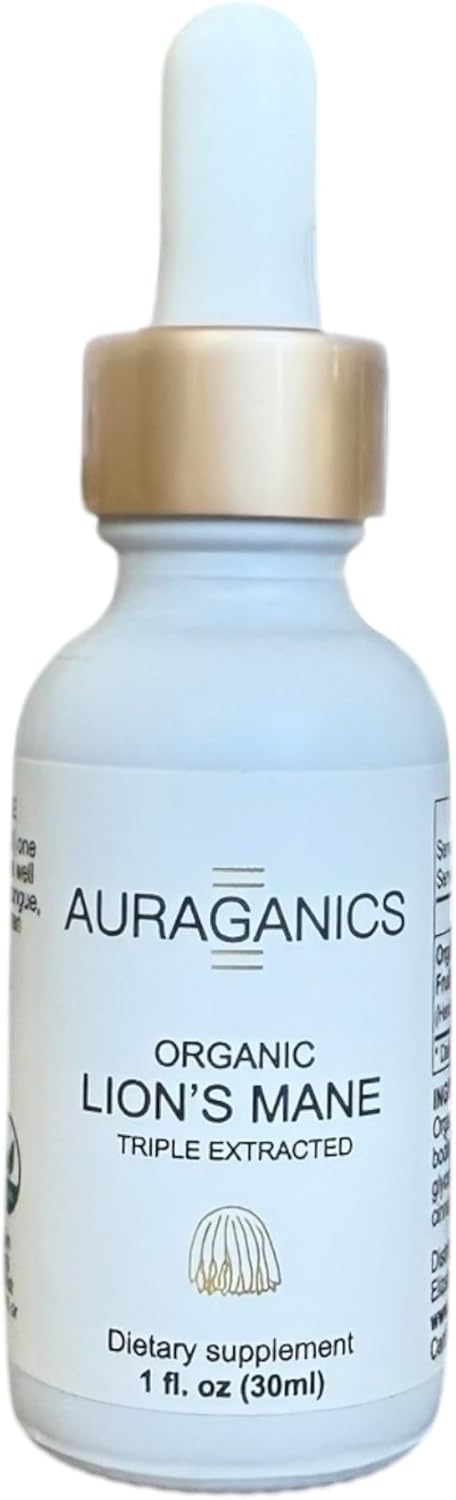 Organic Lion's Mane Mushroom Tincture for Focus and Memory | Triple Extracted Fruiting Body | USA Grown | Certified Organic | Cinnamon Flavor | 1 Month Supply