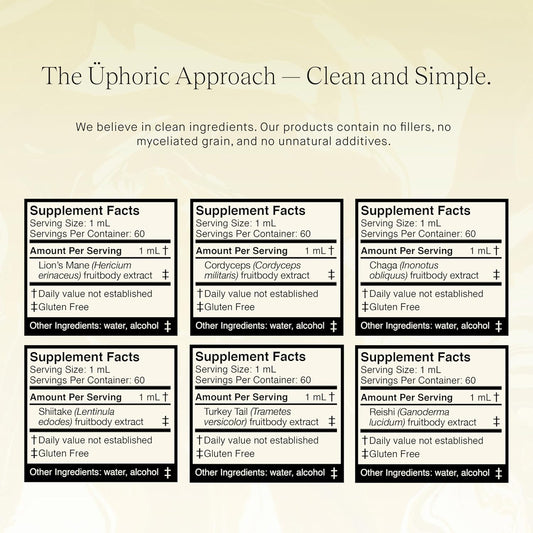 Natural Mushroom Tincture Blend for Immunity, Energy, & Cognitive Function - UPHORIC URTH Blend No.1-6 with Reishi, Chaga, Lions Mane, Turkey Tail, Cordyceps, & Shiitake (240 Servings)