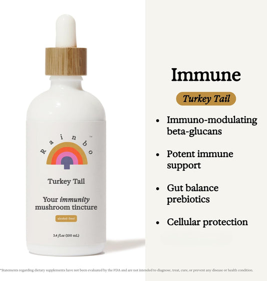 Alcohol-Free Turkey Tail Mushroom Tincture for Immune Support & Gut Health - 3.4 fl oz Vegan Liquid Supplement