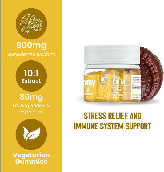60 Count Troomy Nootropics Reishi Calm Gummies with Natural Pineapple Peach Flavor - Gelatin-Free, Gluten-Free, Vegetarian