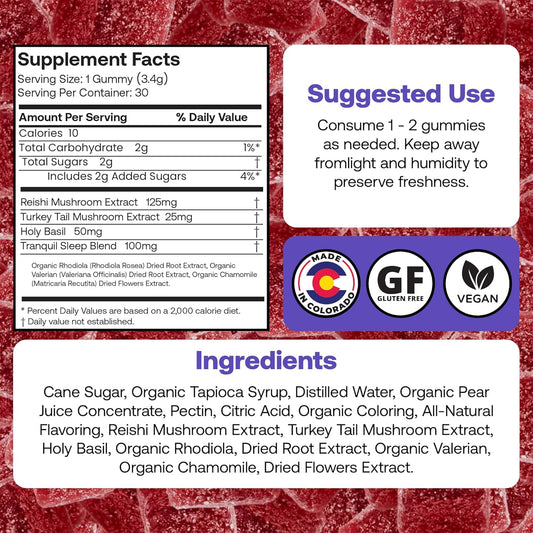 Mixed Berry P.M. Formula Mushroom Gummies for Sleep, Relaxation & Stress Relief - Reishi & Turkey Tail Mushroom Supplement