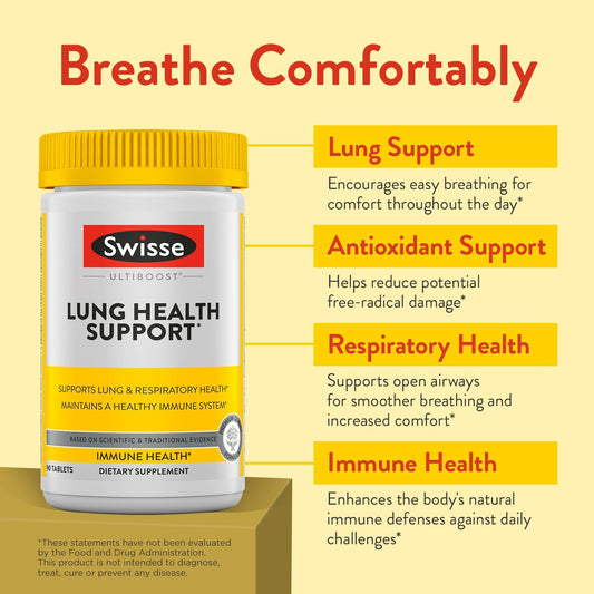 Swisse Lung Health Tablets | Enhances Respiratory Health with Mullein Leaf & Reishi | Boosts Immune System with Zinc & Vitamin C | 90 Tabs