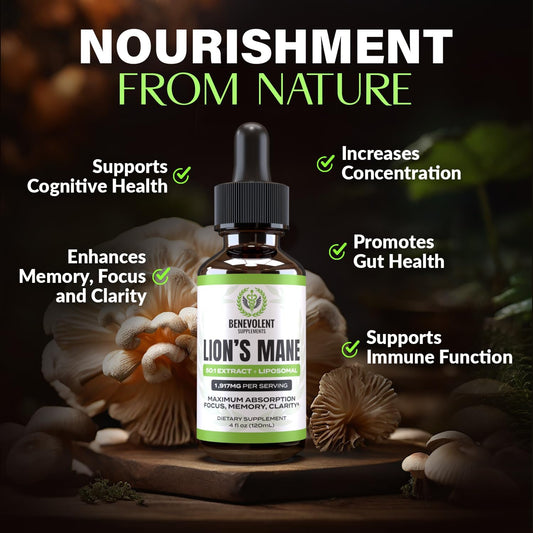 Lion's Mane Mushroom Liquid Extract Supplement for Focus, Memory, and Clarity - Phospholipid Liposomal Drops - 4 Fl. Oz - USA-made