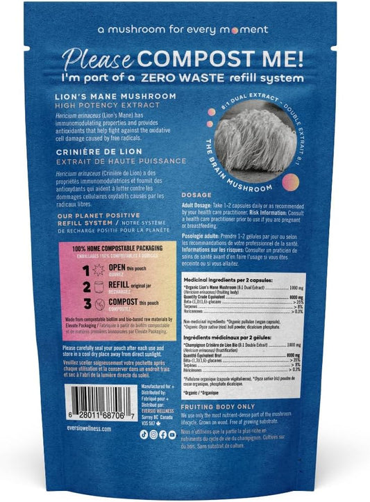 Organic Lion's Mane Mushroom Supplement - 8:1 Dual Extract, 500mg, 60 Vegan Capsules, Memory & Focus Support
