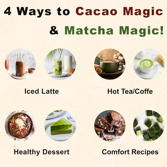 Organic Superfood Mushroom Powder Blend for Focus & Energy - Cacao & Matcha Magic (50 Servings)