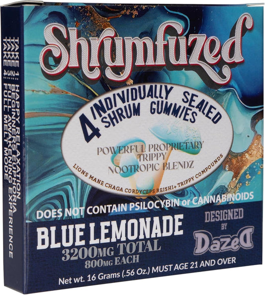 Shrumfuzed Nootropic Gummy 8000mg - Lion's Mane, Reishi, Chaga, Cordycep Mushroom Blend - Blue Lemonade Flavor