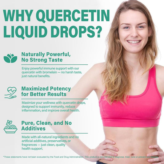 High Absorption Quercetin Drops with Bromelain, Elderberry, Nettle Leaf, and Vitamin C Liquid Supplements for Immune Support