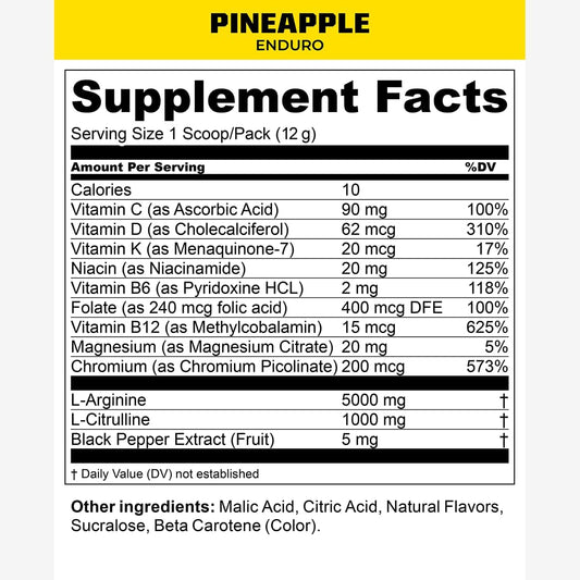 Enduro Nitric Oxide Supplement & Stim-Free Pre Workout - Pineapple Crush Flavor - 30 Servings - Magnesium Citrate, Beet Root Powder, Niacinamide