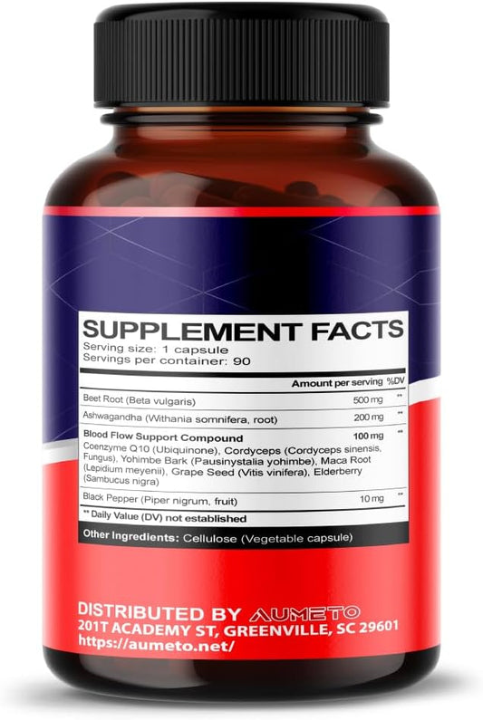 Beet Root Capsules with Ashwagandha for Improved Blood Flow, Energy, and Endurance - 90 Count
