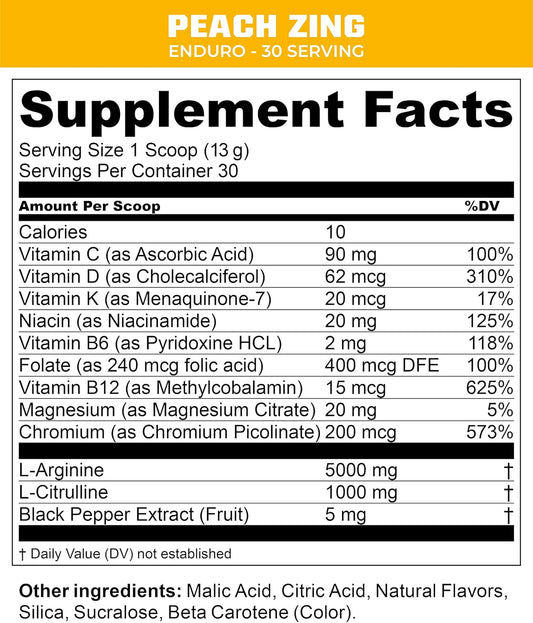 MTN OPS Enduro Nitric Oxide Supplement & Stim-Free Pre Workout - Peach Zing - 30 Servings - Magnesium Citrate, Beet Root Powder, Niacinamide