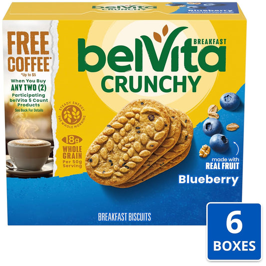 belVita Blueberry Breakfast Biscuits - 30 Packs, 6 Boxes, 4 Biscuits Per Pack