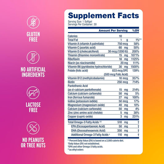 Prenatal Multivitamin with Omega-3 DHA for Healthy Pregnancy - 30 Softgels - Tasty Orange Flavor - 1 Month Supply