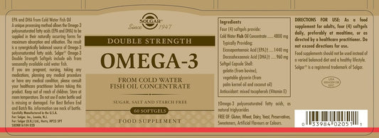 Solgar Omega 3 Double Strength Softgels - 700 mg - 60 Count - Cardiovascular, Joint & Cellular Health - Non-GMO, Gluten Free