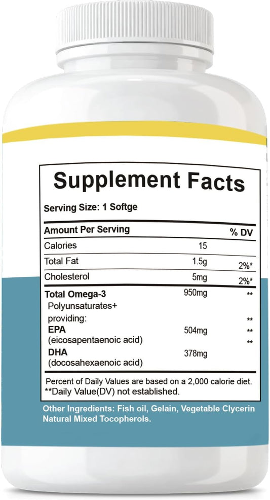 Omega 3 Fish Oil Supplements - 90 Softgels, 950mg per Serving - 100 Day Supply