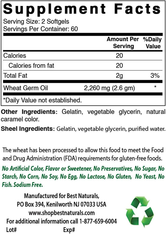BulkSupplements.com Wheat Germ Oil Softgels - 1130mg Wheat Germ Oil Supplement, Nutritional & Soy Free, 240 Softgels