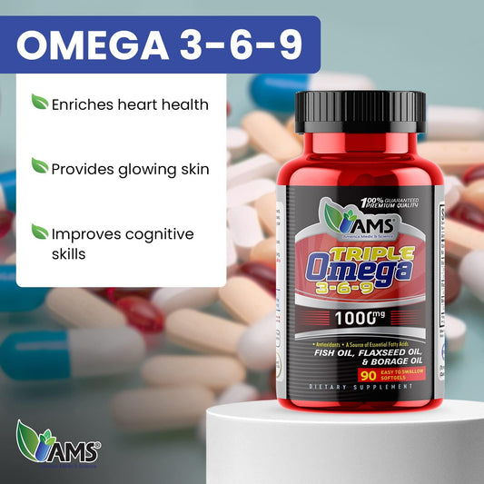 America Medic & Science Omega 3-6-9 Softgels - Dietary Supplement for Heart Health - Fish Oil, EPA, DHA, Flaxseed, Evening Primrose - Men & Women - 90ct