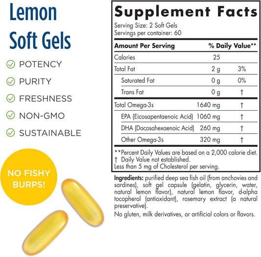 Nordic Naturals ProEPA Xtra Soft Gels - Lemon Flavor, 1640mg Omega-3, High-Intensity EPA Formula for Mood and Heart Health, Non-GMO - 60 Servings