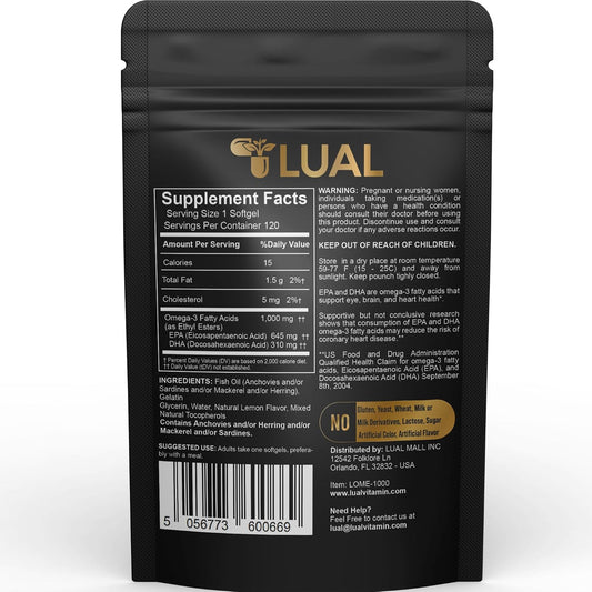 Omega-3 Fish Oil Supplement 1000mg - 120 Soft Gels | High Omega-3 Fatty Acids | Fish Oil Omega 3 Supplements