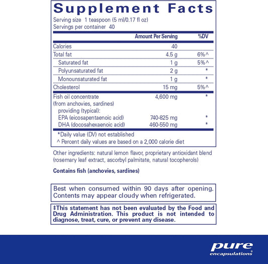 Ultra-Pure EPA/DHA Fish Oil Liquid Supplement | 7 fl. oz. Lemon Flavor | Molecularly Distilled Omega-3 Oil