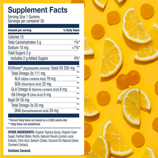 Wiley's Finest Kids Vegan Omega-3 Gummies - Vegetarian Lemon Flavored Supplement with Natural Sugar - Gluten-Free DHA, ALA & SDA - 30 Gummies