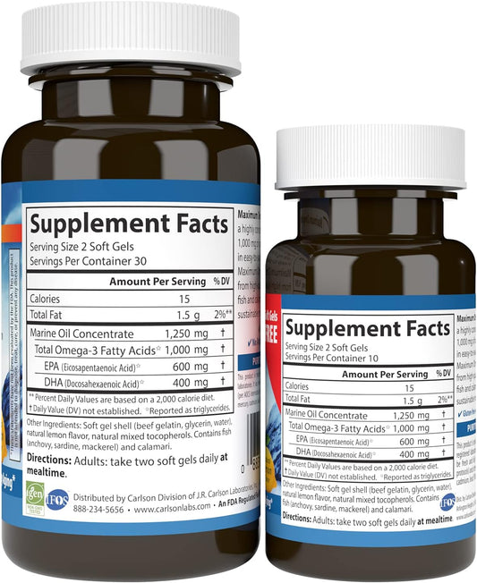 Carlson Maximum Omega Minis 1000 mg Omega-3s Lemon Softgels for Heart, Brain, and Aging 80 Count