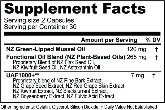High Potency FREZZOR Omega 3 Black Green Lipped Mussel Oil for Joint Comfort, Mobility, and Collagen Support - 60 Softgels