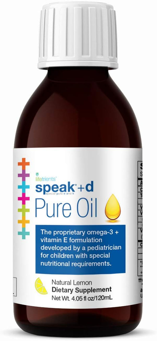 Lifetrients Speak+D Pure Oil - Natural Lemon - 4.05 oz - Pediatrician Formulated for Children with Special Nutritional Needs - Omega-3, Vitamin E, D & K