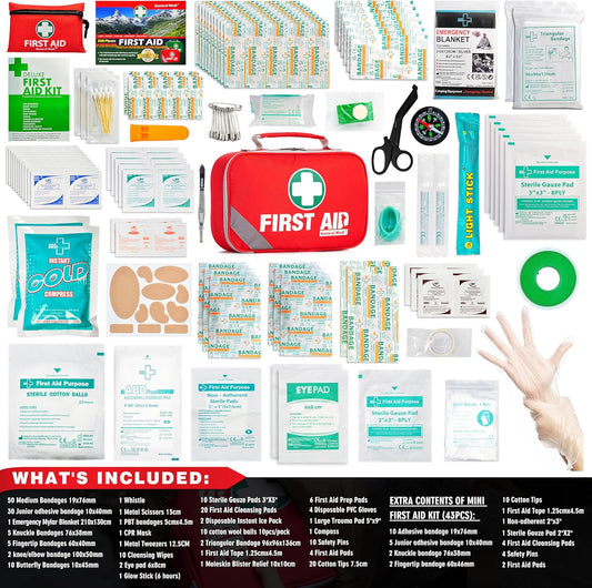 Portable Red Travel First Aid Kit with 300PCS for Home, Car, Outdoor Adventures - Essential Emergency Gear for Camping, Hiking, and Business