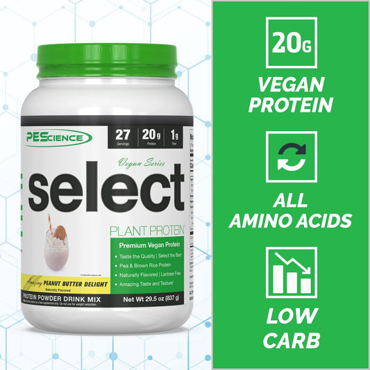 Premium Plant-Based Protein Powder, Peanut Butter Delight Flavor, 27 Servings, PEScience Select Vegan Blend of Pea and Brown Rice