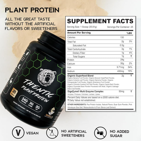 Organic Plant Based Protein Powder - Vegan, Non-Dairy, Gluten & Soy Free, No Artificial Ingredients, No Sugar Added, with BCAAs & Digestive Enzymes - Vanilla Flavor, 25 Servings - 1.9 lb