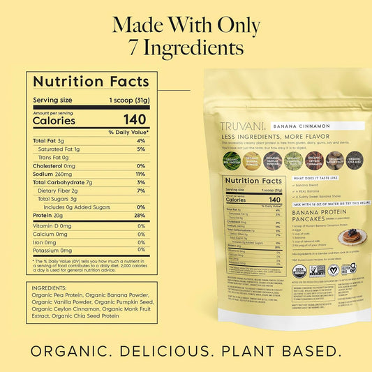 Organic Plant Based Protein Powder with Banana Cinnamon Flavor - 20g Protein, Keto-Friendly, Gluten & Dairy Free, Low Carb, No Sugar Added