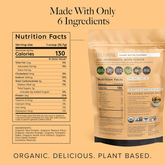 Organic Peanut Butter Vegan Pea Protein Powder - 20g Plant-Based Protein, 10 Servings, Keto-Friendly, Gluten & Dairy Free, Low Carb, No Sugar Added