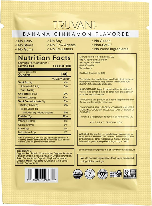 Organic Banana Cinnamon Vegan Pea Protein Powder - 20g Plant Based Protein, Keto, Gluten & Dairy Free, Low Carb, No Sugar - 10 Travel Packets