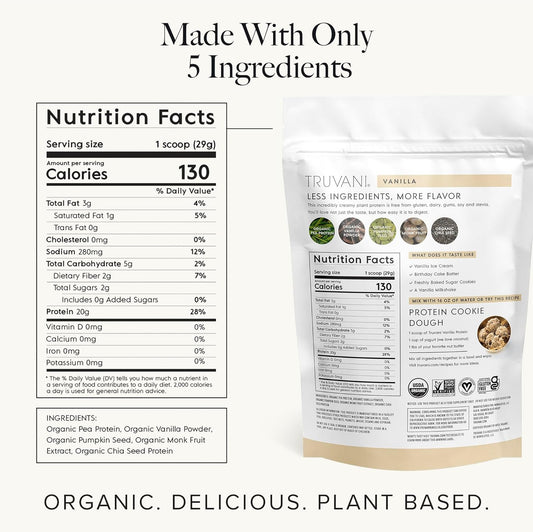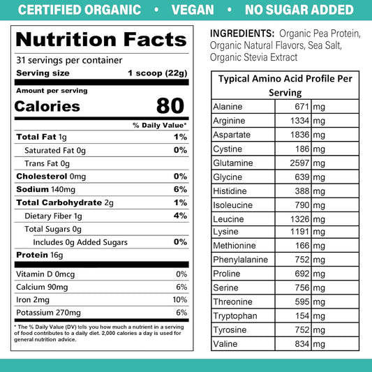 Vanilla Vegan Pea Protein Powder - 20g Organic Plant-Based Protein - Keto-Friendly, Gluten & Dairy Free - 18 Servings - No Added Sugar - Low Carb