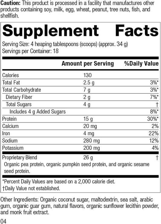 Whole-Food Based Vanilla Protein Powder for Healthy Nails, Hair, and Skin - Standard Process Veg-E Complete Pro - 22oz