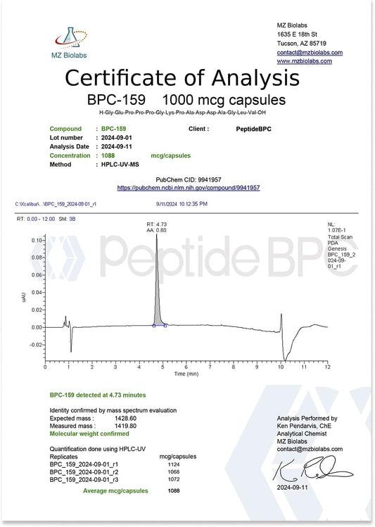 High Potency PeptideBPC BPC-159 Alternative for Muscle & Workout Recovery - 60 Capsules, 1000 mcg - Research Proven Quality
