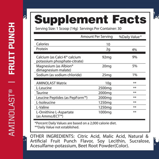 Gaspari Nutrition Aminolast Fruit Punch BCAA Superfuel with Electrolytes - 30 Servings