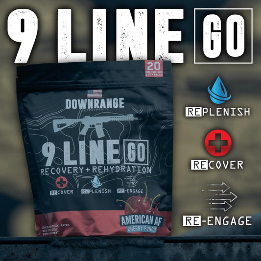 DownRange 9 Line Go Recovery Powder Packets - Electrolytes, Amino Acids, & Coconut Water for Muscle Recovery & Energy - 20 Sticks - Cherry Punch