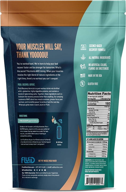 Natural Mint Chocolate Post-Workout Drink Mix with Whey Isolate Protein, L-Glutamine, Carbs - Gluten-Free & Lactose-Free for Muscle Recovery