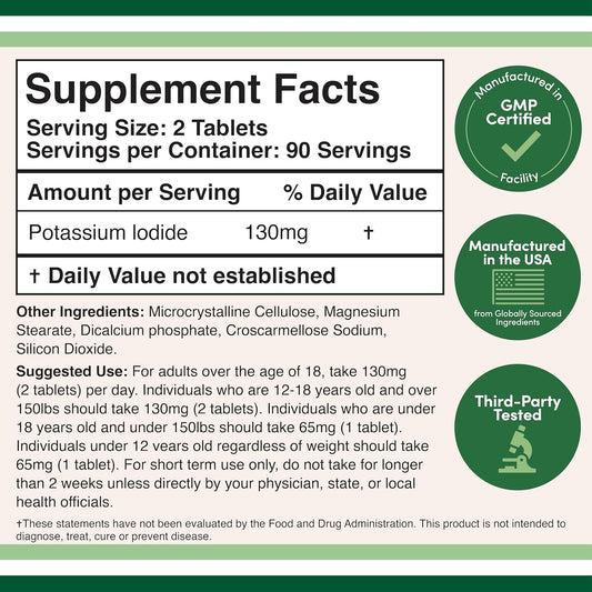 High-Quality Potassium Iodide Supplement 130mg - 120 Tablets - Non-GMO & Gluten-Free - Made in USA by Amazing NutritionVendor:Amazing NutritionRegular price $92.51 AUDRegular priceUnit price / per-