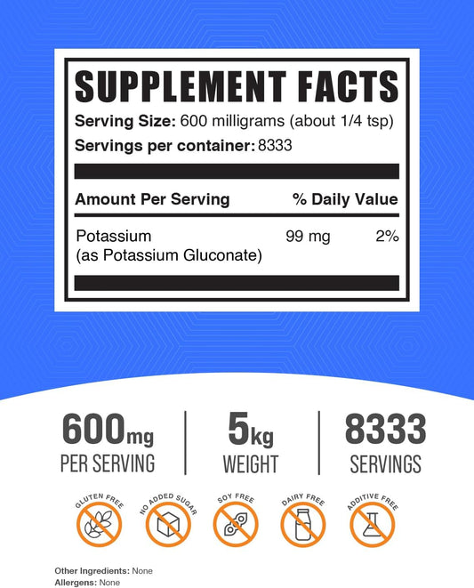 BulkSupplements.com Potassium Gluconate Powder - Gluten-Free Potassium Supplement - 600mg per Serving (99mg Potassium) - 5kg (11 lbs) Pack SizeVendor:BulkSupplementsRegular price $362.16 AUDRegular priceUnit price / per-