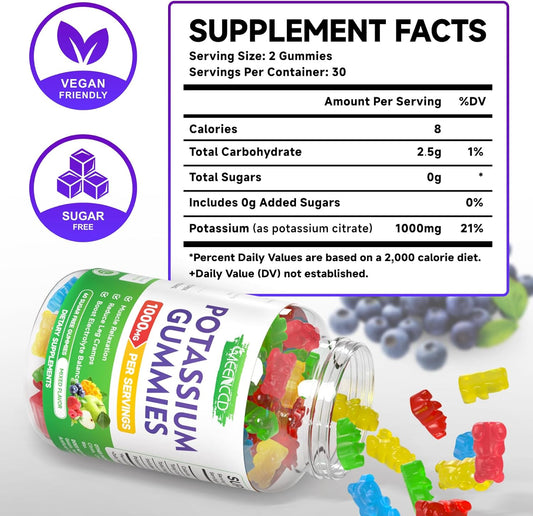 High Potency 1000mg Potassium Citrate Gummies for Adults - Supports Muscle Health & Leg Cramps - Sugar-Free Mixfed Fruit Flavor - 120 CountVendor:MEENCCDRegular price $139.35 AUDRegular priceUnit price / per-