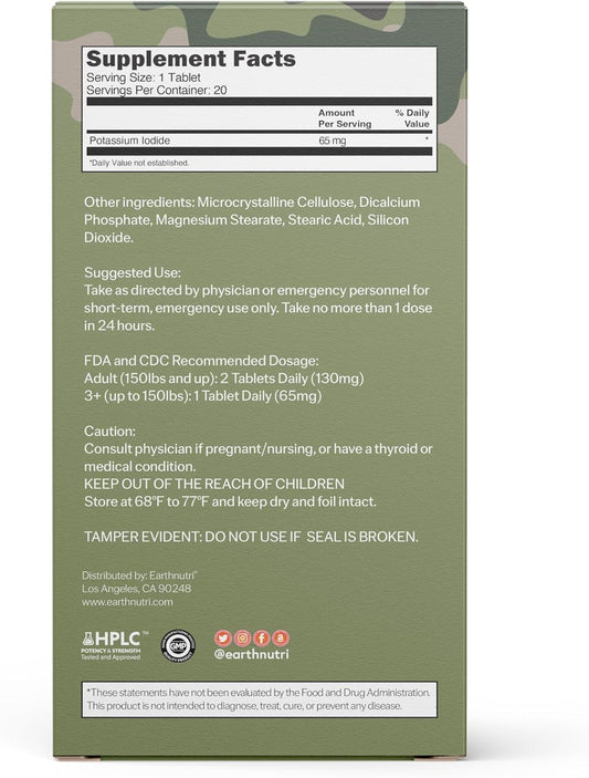 EarthNutri KI-Radi™ Potassium Iodide Tablets 65 mg - 20 Tablets, Foil-Foil Blister Packaging - Potassium Iodide Supplement