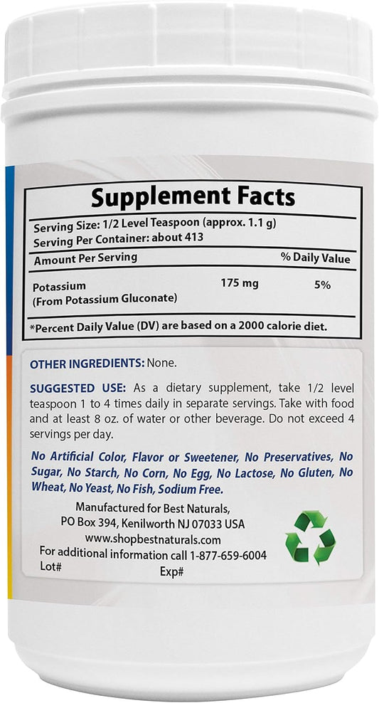High-Quality Potassium Gluconate Powder - 1lb (16oz) - Pure and Natural Supplement