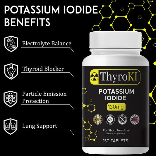 2-Pack ThyroKI Potassium Iodide Tablets 130mg (300 Tablets) - Fast Dissolving Thyroid Support Pills, Non-GMO Iodine Supplement for Emergency Survival