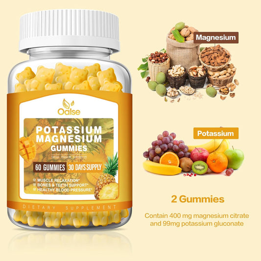 High Absorption Potassium Magnesium Gummies - 99mg Potassium Citrate, 400mg Magnesium Citrate - Chewable Mango Pineapple Gummy Supplements for Adults & Kids - 60 CountVendor:OALSERegular price $119.69 AUDRegular priceUnit price / per-