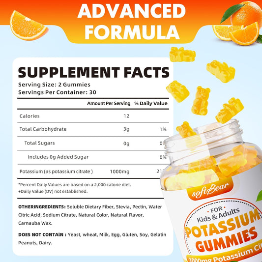 High Potency Potassium Citrate Gummies for Adults - 1000mg Orange Flavor, Sugar Free, Supports Leg Cramps & Muscle Health - 120 CountVendor:softbearRegular price $131.30 AUDRegular priceUnit price / per-