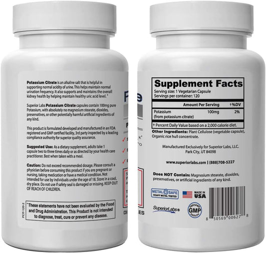 Potassium Citrate NonGMO Supplement - 100 mg Dosage, 120 Capsules - Supports Kidney Function & Mineral Balance for Overall Health by Superior LabsVendor:Superior LabsRegular price $114.65 AUDRegular priceUnit price / per-
