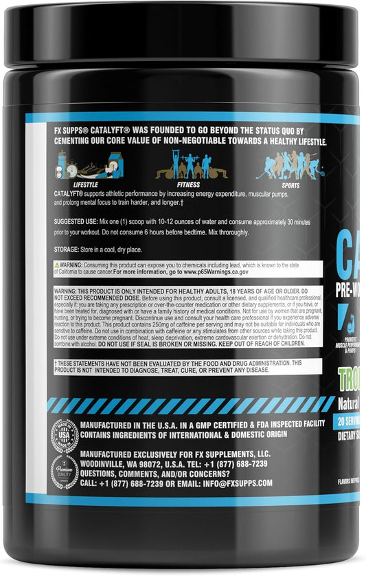 FXSUPPS Catalyft Pre-Workout Powder Drink - Tropical Storm Flavor | Formulated for Men and Women with Creatine, Caffeine, and Beta-Alanine | Enhances Energy, Muscle Gain, and Focus | 20 Servings