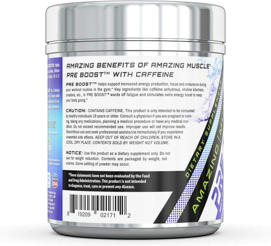 Amazing Nutrition Muscle Pre Boost Formula: Caffeine Supplement, 20 Servings, Blue Raspberry Flavor